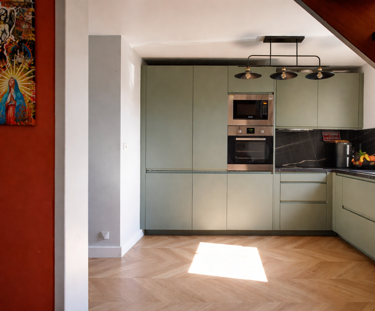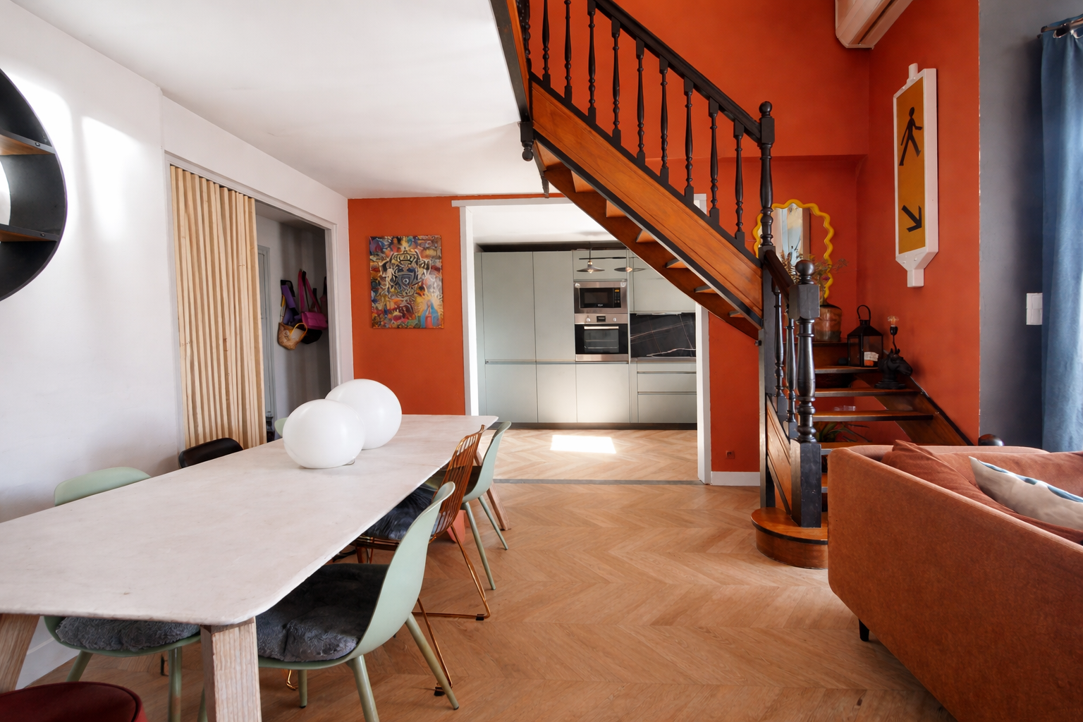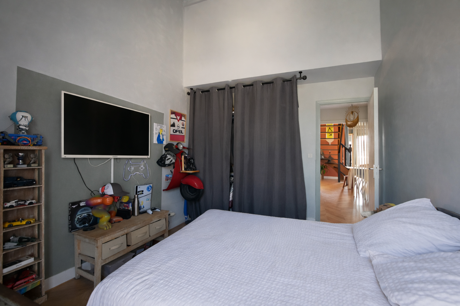 - Au 3ème étage : une mezzanine desservant une chambre, une salle d’eau avec WC et un espace de rangement